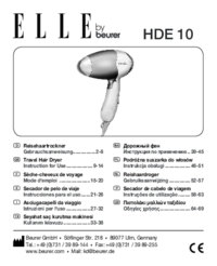 Manuales del propietario y guías del usuario para Secadoras de cabello Beurer HDE 10.